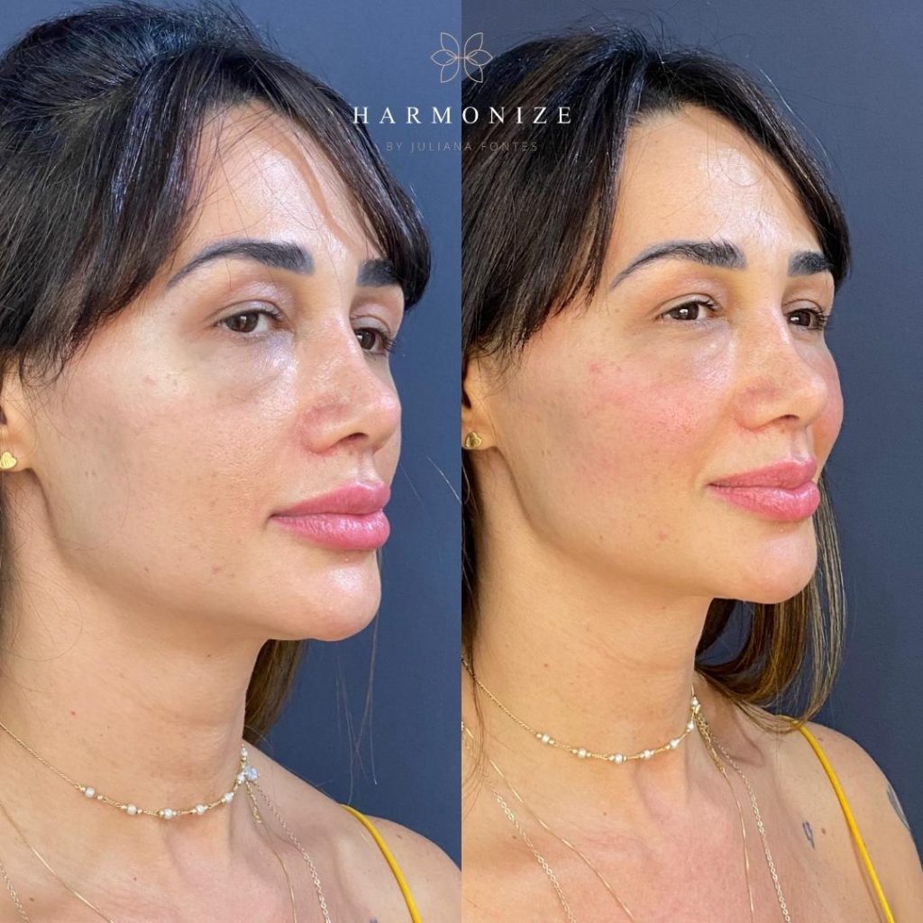 O procedimento é feito com ácido hialurônico. A aplicação, além de remodelar o terço médio da face, hidrata a pele, deixando-a mais brilhante e bonita.