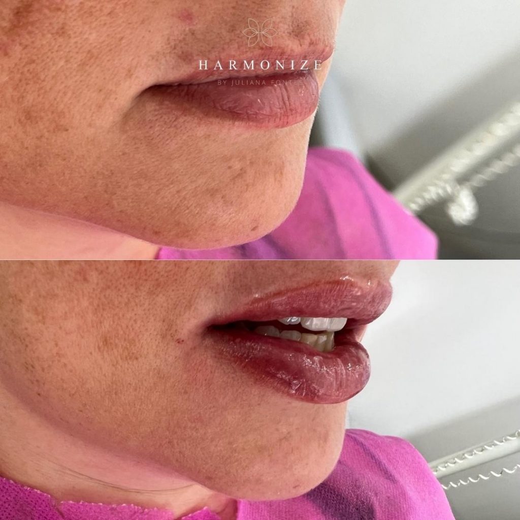 O Preenchimento Labial é feito com ácido hialurônico, que é um material preenchedor biocompatível.